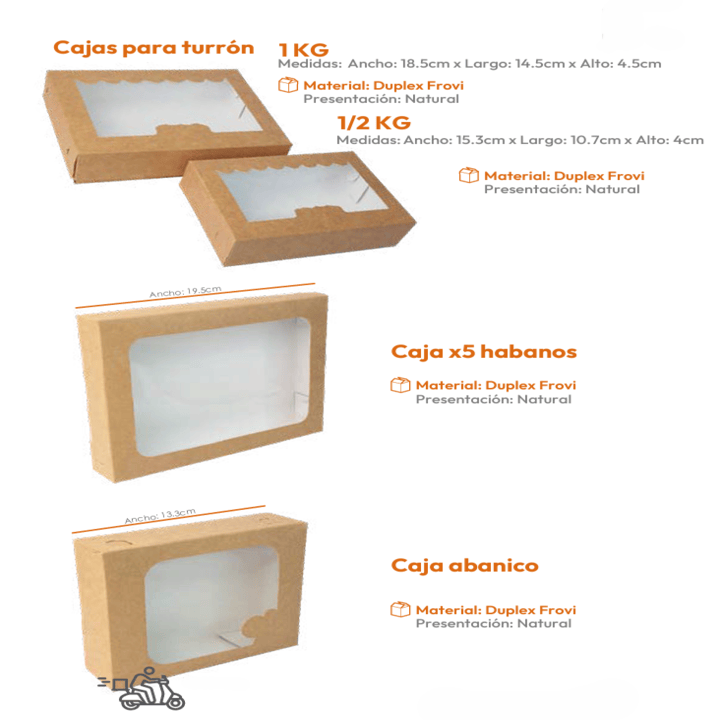 | Producto | CAJA ABANICO, CAJA CHOCOTEJA x12, CAJA CHOCOTEJA x6, CAJA DE CORAZON DIAMANTADO, CAJA DE TURRON x 1 KG., CAJA DE TURRON x 1/2 KG, CAJA HABANO x5, CAJA PARA GALLETA, CAJA R-0, CAJA R-1, CAJA R-5 |